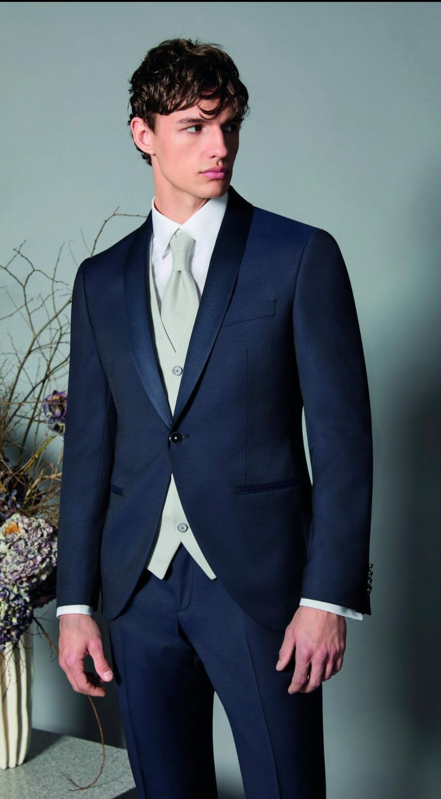 Contrasto Armonioso: Il contrasto tra i due colori crea un look dinamico ma equilibrato, che valorizza la figura dello sposo